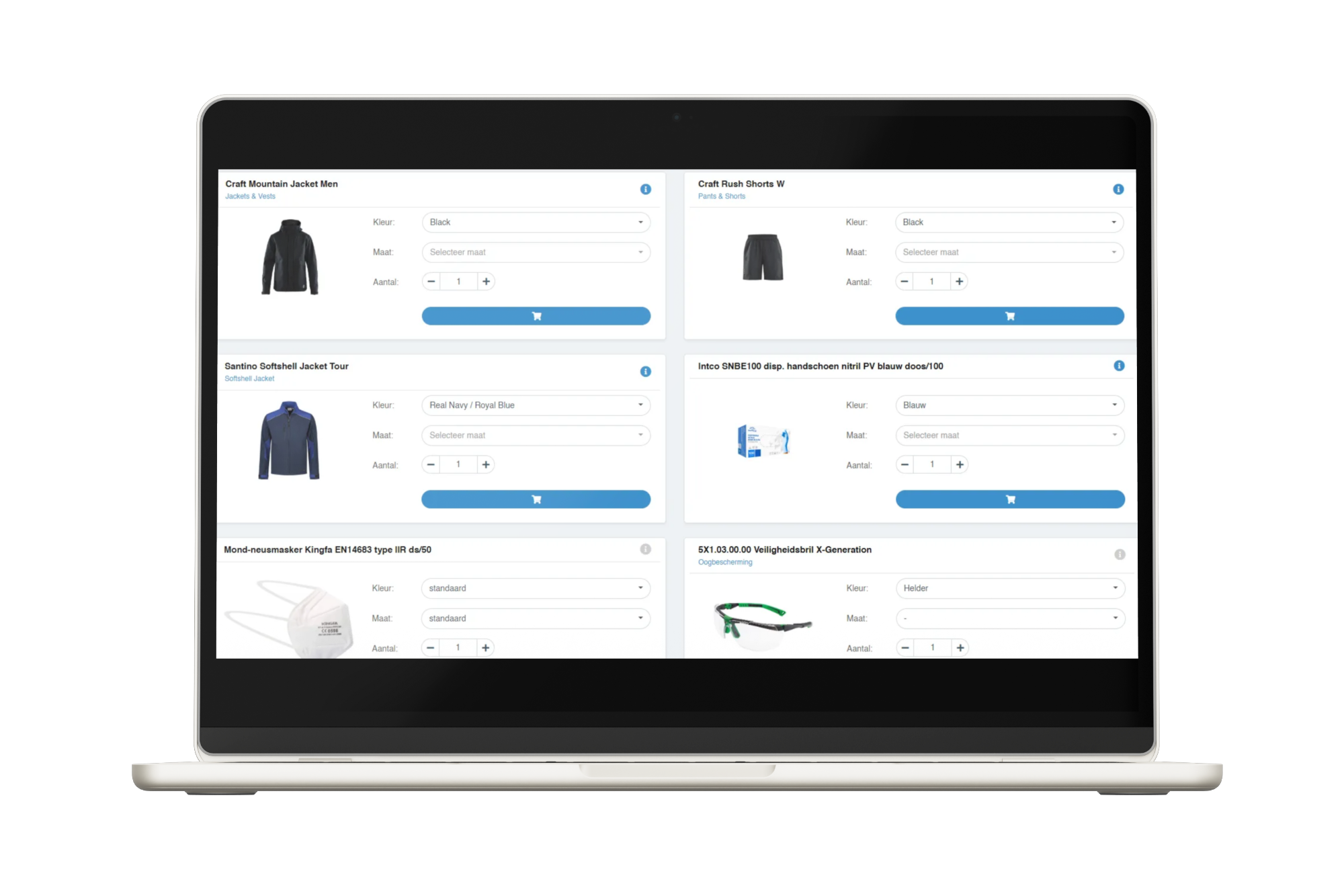 - Efficiënt en overzichtelijk – Eén systeem voor al je bedrijfskleding en PBM’s.